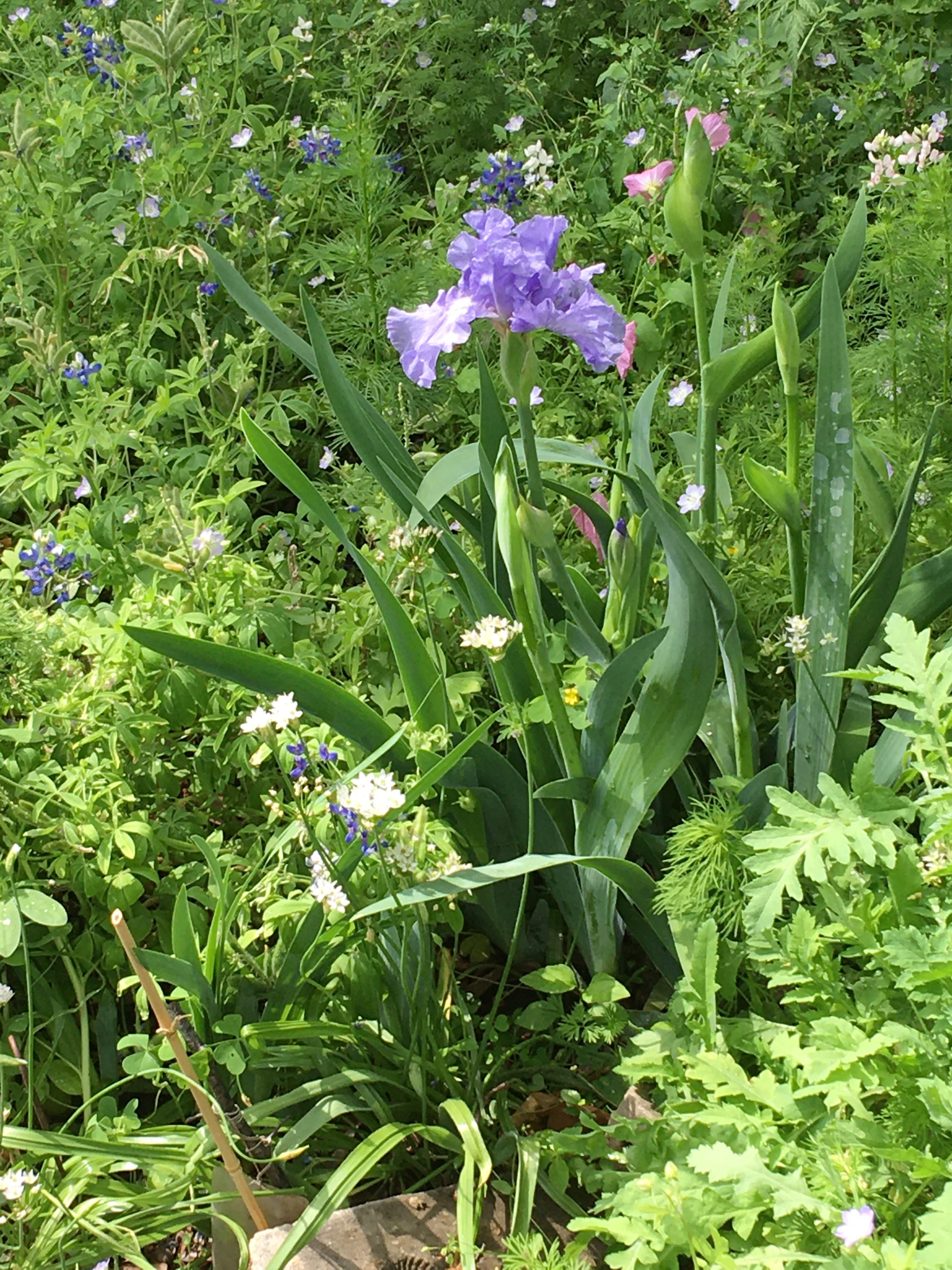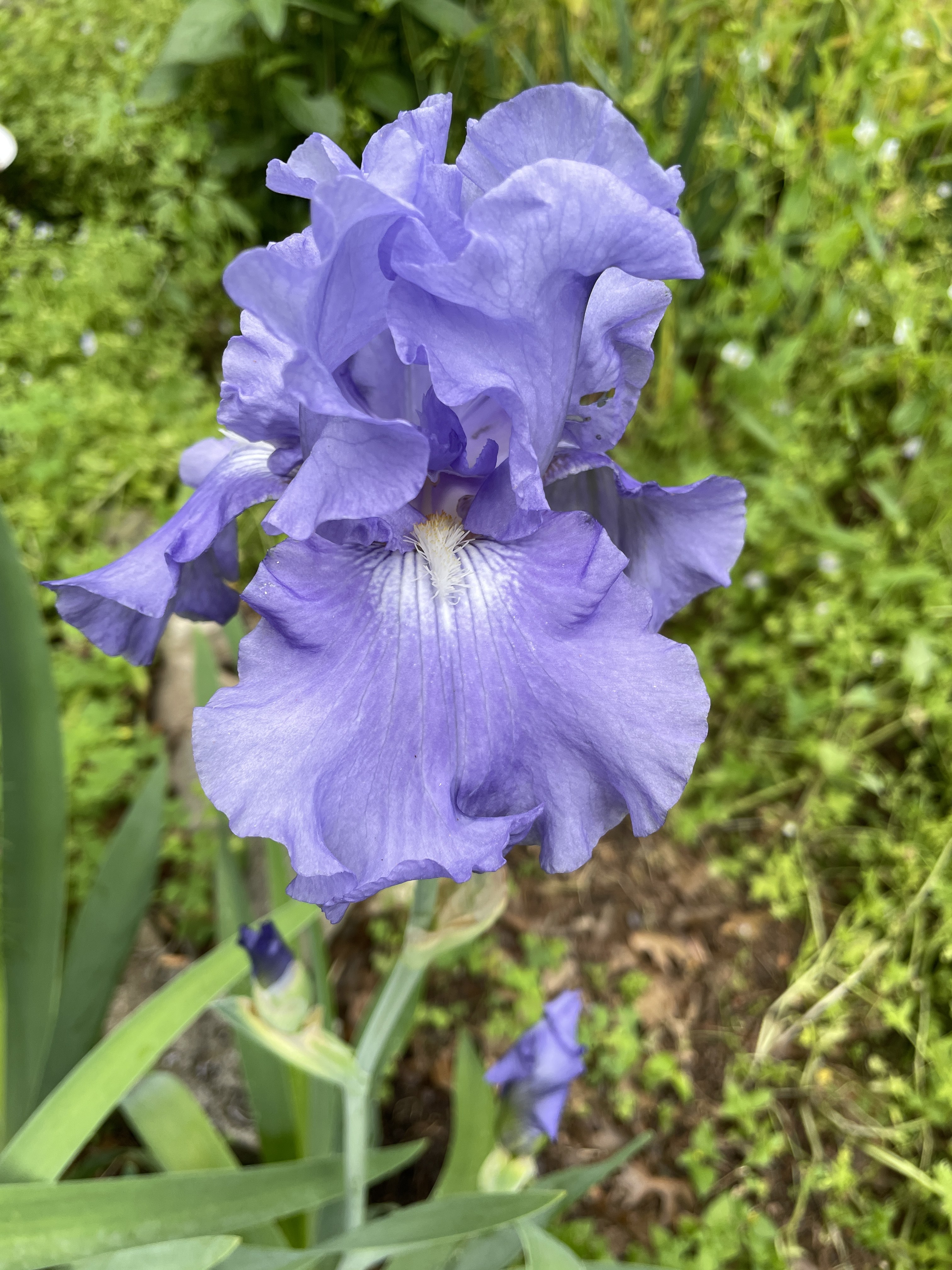 ‘Fiesta in Blue’ first flower. This is not a very exciting blue compared with the irises I bought in the early 2000s from Schreiner’s.